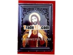 Code No : MYU 62Name : Jesus Arch PanelWood : Rose WoodSize : W 16 * 21 HRemarks: This panel comes with Arch work. Many other God and Goddess panels like Saibaba, Mary Mother, Infant Jesus, Shiva Parvathi, Lakshmi, Muruga, Ganesha and Budha can be supplied.It is a visual delight. Painted in soft colours, with touches of pink, green and gold, the carved icons and panels combine the typicalfluid cum sculpting with innovative formats.It comes in the following sizesSizes Weights16 * 21 2 kg18 * 24 3.5 kg18 * 30 5 kg24 * 36 8 kgThe weight of the product is shown approximately according to the size.Mode of delivery is by ship or Air as you wish.